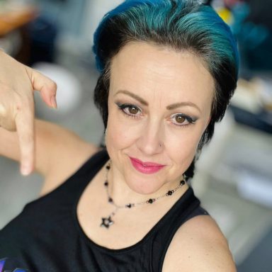 Kat (AKA Kat Aklisum) - Our little pocket rocket! Don't be fooled by her less than average height; what she lacks in stature, she more than makes up for in attitude and stage presence. She is guaranteed to keep eyes front and centre!